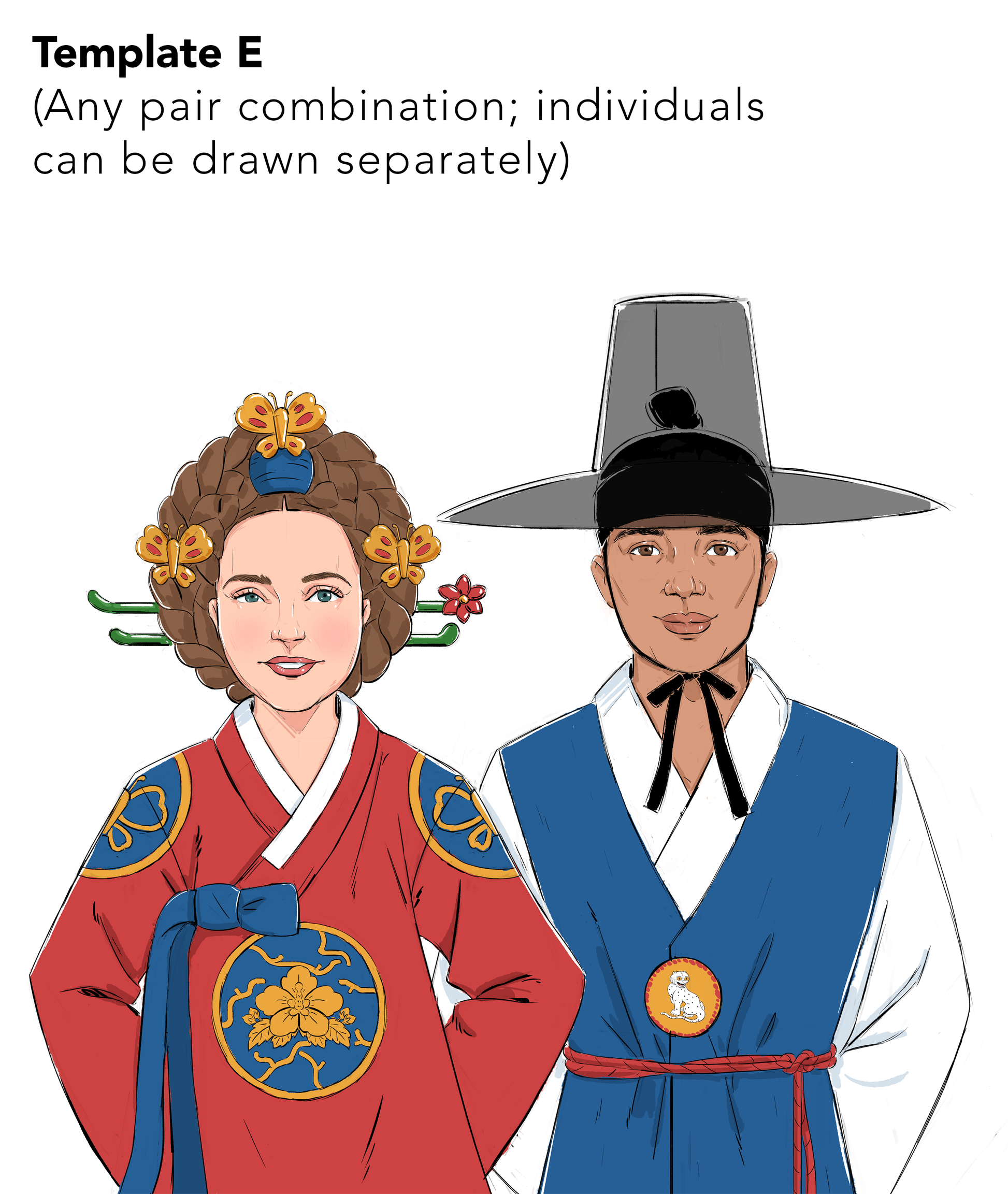 1) Choose Your Template: Select the Hanbok portrait style you like best from our available templates.